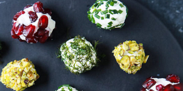 Assorted Holiday Goat Cheese Balls with Pistachios and Pomegrantes