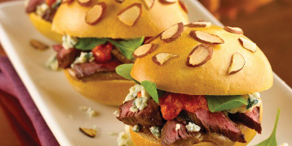 Grilled Skirt Steak Sliders with Smoked Almond Romesco