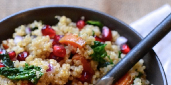 Warm Quinoa, Sweet Potato, Kale, and Pomegranate Salad